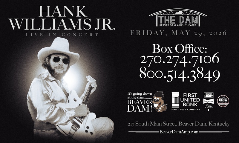 Country music icon and living legend HANK WILLIAMS, Jr. is returning to Beaver Dam Amphitheater for one unforgettable night on Friday, May 29, 2026. The concert, part of the First United Bank and Trust Concert Series, will begin at 7:00 PM. Gates' opening time will be announced later.